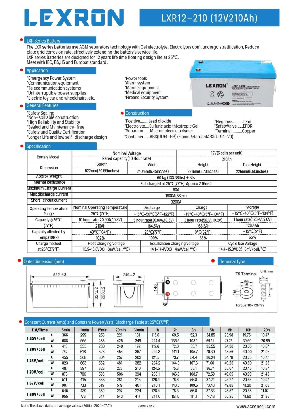 210AH-12V NANO-KARBON JEL AKÜ, derin deşarja karşı dayanıklı yapısı ile uzun süreli performans sunar. Düşük kendi kendine deşarj oranı sayesinde bekleme sürelerinde kapasite kaybı minimum seviyededir. Titreşime dayanıklı tasarımı, mobil ve sabit uygulamalarda güvenli kullanım sağlar. 210AH-12V NANO-KARBON JEL AKÜ, uygun şarj kontrol cihazı ile birlikte maksimum verim ve performans sağlar.